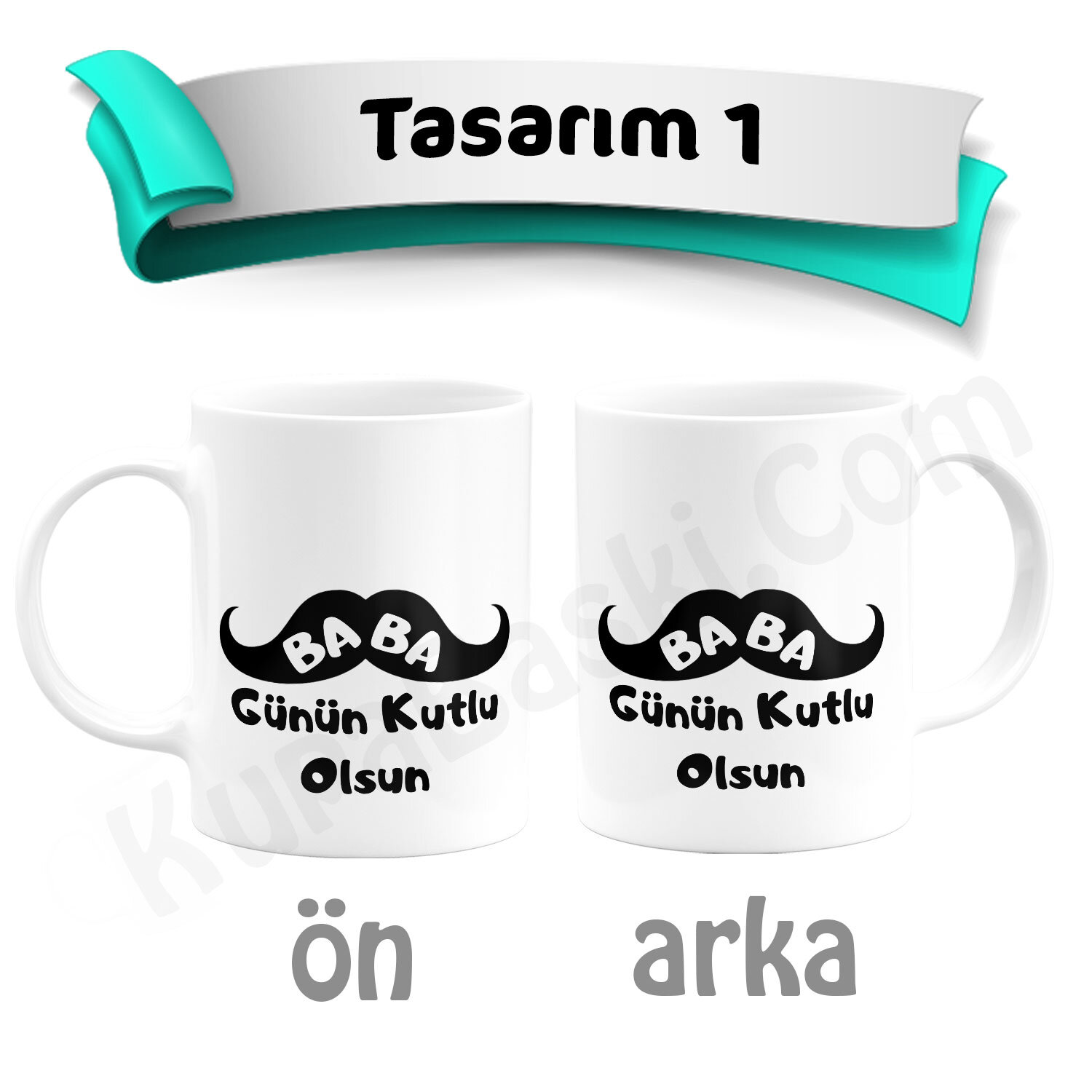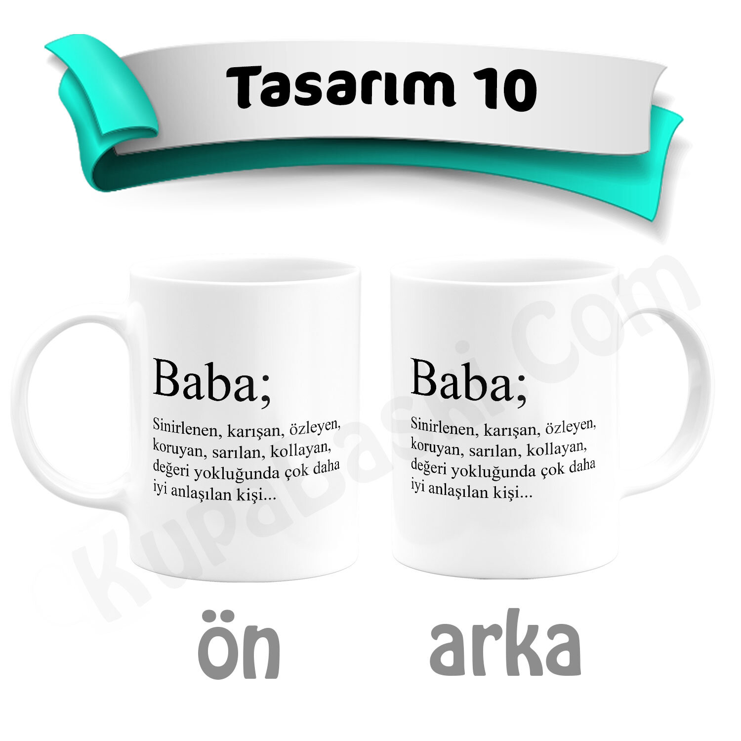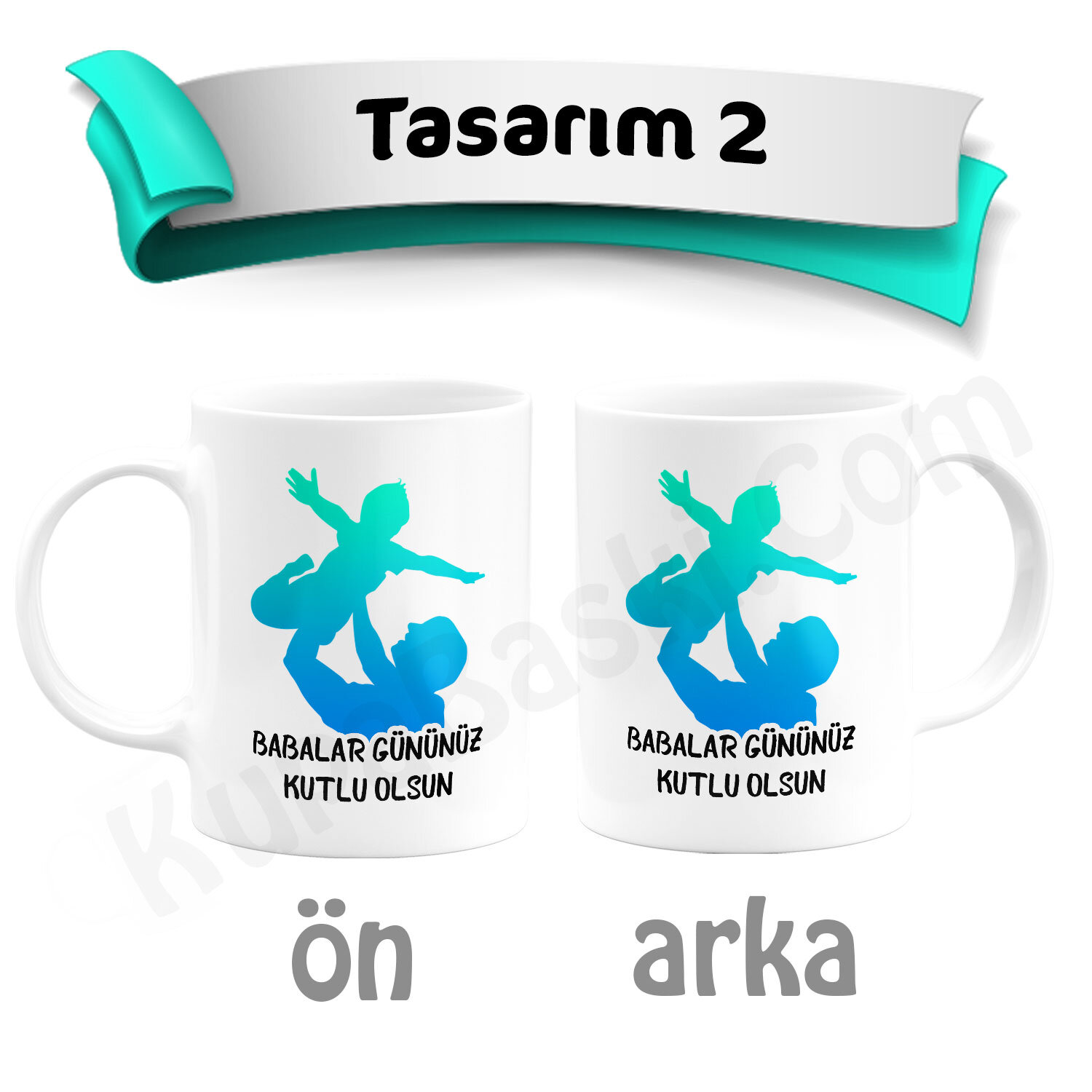 Babalar Günü Kupa Bardak baskı siparişiniz, 10 tasarım ve isme özel imkanı ile çift yön renkli baskılı olarak gönderilmektedir.