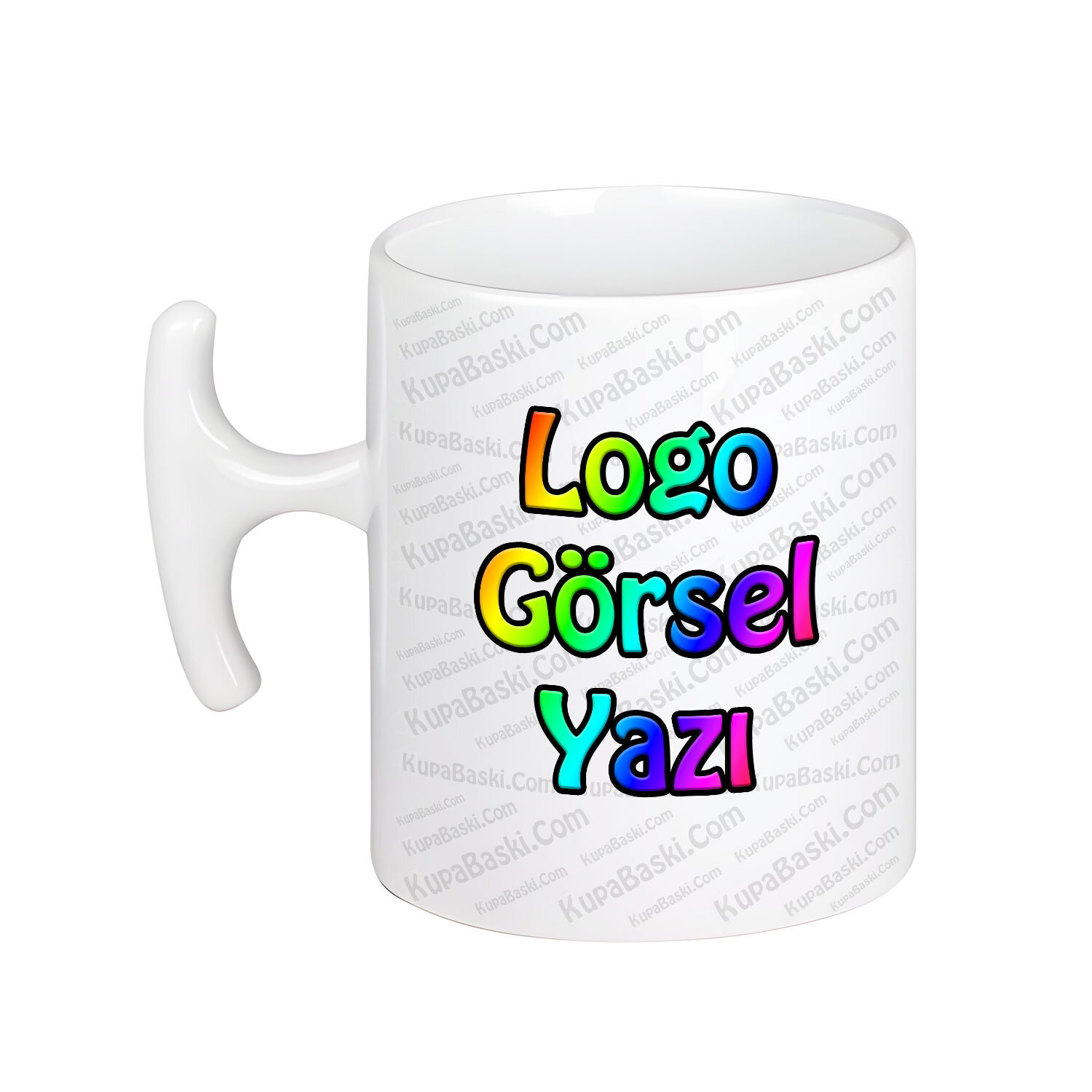 Çekiç Kulplu Kupa Bardak Baskı siparişiniz, çift yön renkli baskılı ve kendisine ait kupa bardak kutusunda gönderilmektedir.