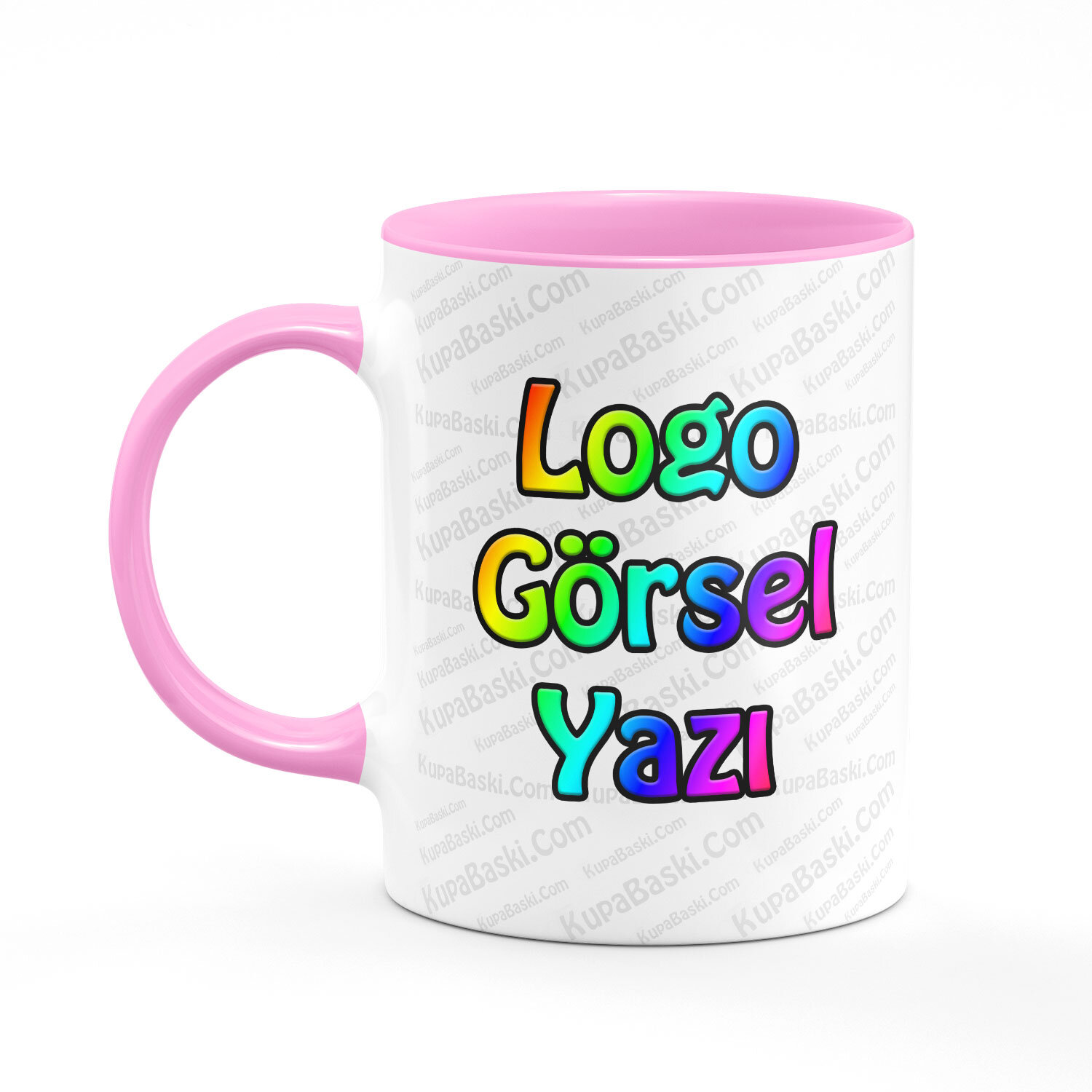 İçi ve Kulpu Pembe Kupa Bardak Baskı siparişiniz, çift yön renkli logo, isim ve istediğiniz her görsel baskılı olarak gönderilmektedir.