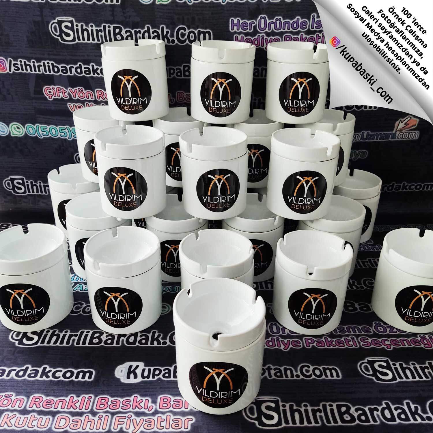 Toptan ve Kişiye Özel Kokusuz Küllük siparişiniz, çift yön renkli logo, yazı, görsel baskılı ve her biri özel kutusunda gönderilmektedir.